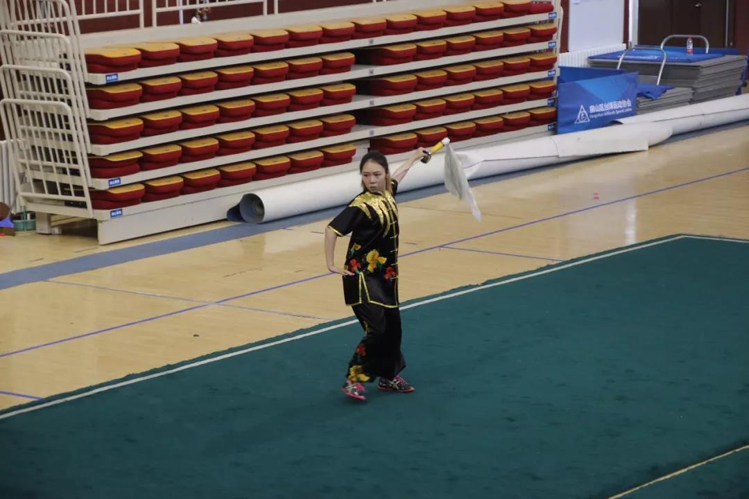 2017级本科生曹尔立在本次比赛中获得女子杨氏太极拳亚军,女子42式太极剑第四名,女子各式太极器械第三名。