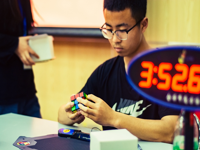 “小魔方、大智慧”,2018年5月12日,由我校魔方交流协会承办的第二届魔方大赛在良乡校区演艺厅火热开赛,本次比赛由赵俊华教练指导,来自16个书院、学院的60余名魔方爱好者齐聚一堂,进行高手间的较量,大赛为校园魔方爱好者提供展示风采与技术切磋平台,通过赛事宣传与举办吸引带动更多校园大学生感受魔方魅力,加入“魔方潮”。