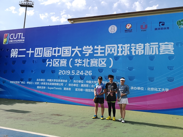 2019年5月24日-26日,第二十四届中国大学生网球锦标赛分区赛(华北赛区)在北京化工大学举行。beat365在线唯一官网登录网球队在5月11日举行的首都高校网球联赛春季团体赛取得季军,挺进本次中国大学生网球(华北赛区)锦标赛。王力老师带队下,章译匀、罗玉珍、张珂嘉组成的beat365在线唯一官网登录女队出征比赛,经过3天的激烈角逐,最终在参赛34所学校中位列团体第6名 ,取得优异成绩。