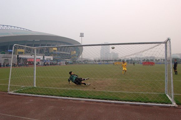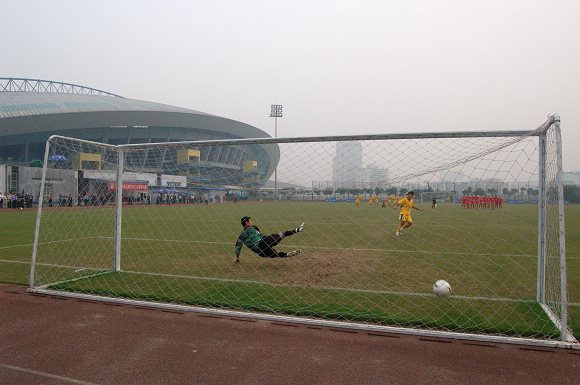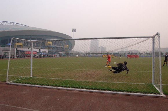 可惜的是我方第二个出场的队员王续射门太正,被对方守门员扑出,双方回到了起跑线上,两轮罚球之后,双方各进一球。