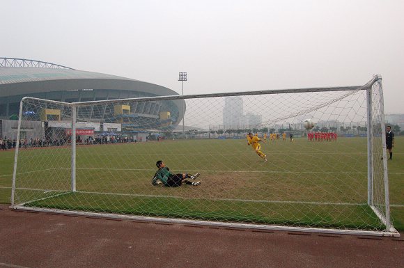 让我们再回顾一下激动人心的冲甲之战的点球决战过程吧。首先是天津火车头队罚点,由于压力过大,这位对方的场上核心队员竟然第一个罚球就将球罚飞了~~~