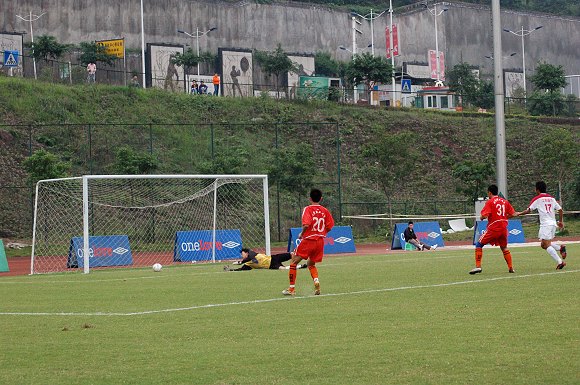 比赛进行到第70分钟时,我校足球队员经过多次的拼抢和配合终于迎来了搬回比分的机会,31号前锋张宇与队员精彩配合,二龙齐飞突破对方的防线攻至对方门前,张宇一角力度和角度都很刁钻的劲射终于将比分扳平。