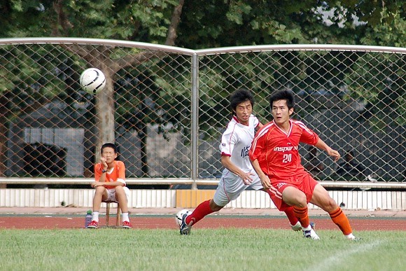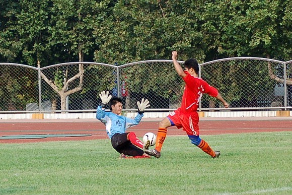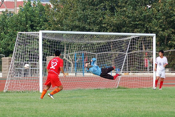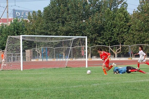 第25分钟,后卫队员3号姚远位置突前,在禁区外突射重炮,球直入网窝,速度之快令对方后卫和守门员都望尘莫及。