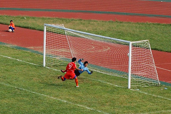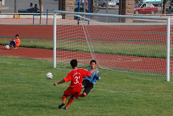 直到上半场第21分钟,我方31号前锋张宇突入禁区,接队友左路斜传,直射空门,守门员无法从已经右移的位置返回,场上比分变为了1:0。