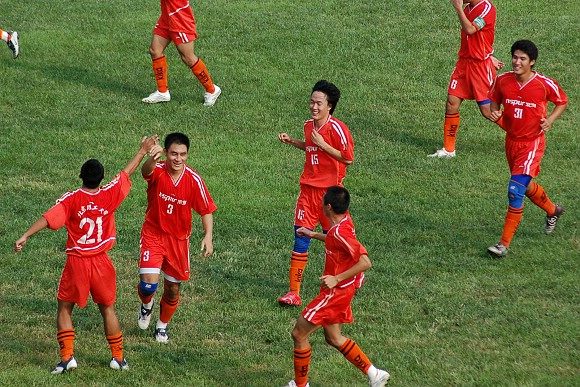 这还没有意味着进球狂潮的结束,第29分钟,我方后卫10号孙尚突发奇兵,几乎完全“拷贝”了张宇的第一个进球,打进了十分钟之内的第五个入球!观众席和替补席一片狂呼,为这一连串的精彩进球而喝彩。