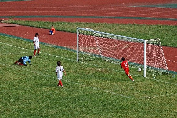 第23分钟,前锋15号聂卉在角球的争抢中再入一球;