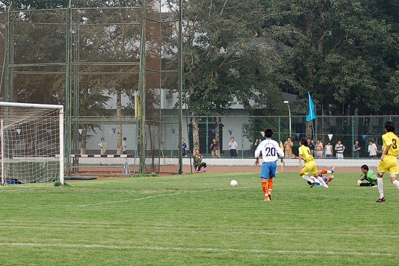 点球由我方6号“点球专家”于飞主罚,皮球应声入网,场上比分变为1:1,直至中场休息。
