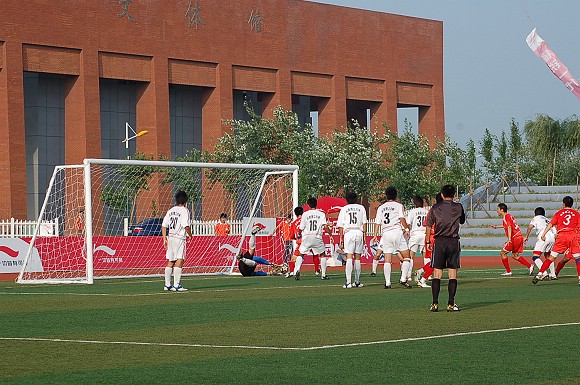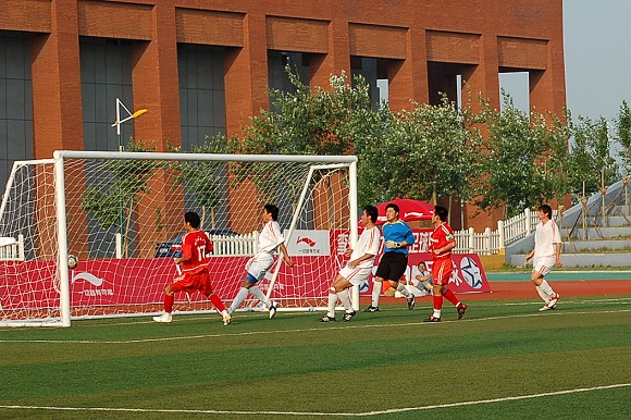第29分钟时,太原理工大学队利用我方后卫的一个疏忽,偷袭成功,场上比分变为3:1。