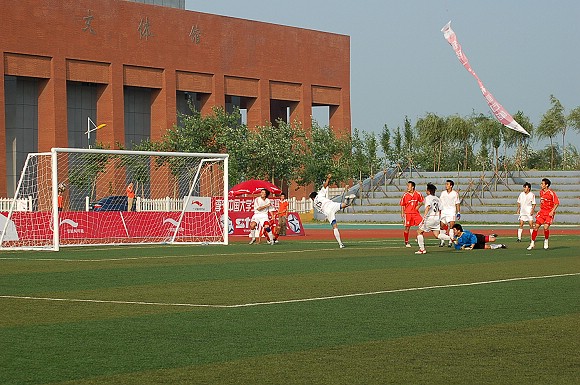上半场双方比分战成1:0,但由于场上风力较大,我方一直在打顶风球,在这样的情况下,上半场最后阶段时,太原理工大学队的体力已经开始明显下降。而下半场,我方开始打顺风球,场上局面也几乎变成了一边倒。