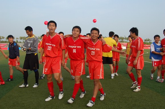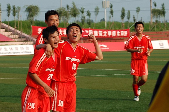 王绪和队友们在为这记“世界波”欢呼。