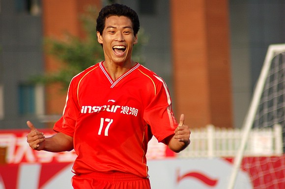 17号队员张树在庆祝进球。