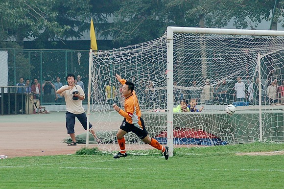 面对守门员的封堵,袁微镇定自若,轻松晃过守门员,将球推入网底,并锁定胜局。