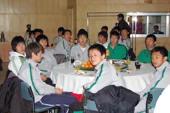 金志扬教授指出,之所以把足球队拉到韩国冬训,是因为除了可以从训练和比赛中得到很多收益之外,还使得所有队员感受到韩国体育文化的熏陶,尤其是在体育训练和比赛的“师道尊严”方面,韩国做的尤其比国内要好的多,他特别提议所有队员像在韩国冬训时赛前赛后的必修课一样,以鞠躬的方式感谢社会各界对beat365在线唯一官网登录足球队的大力支持与帮助。