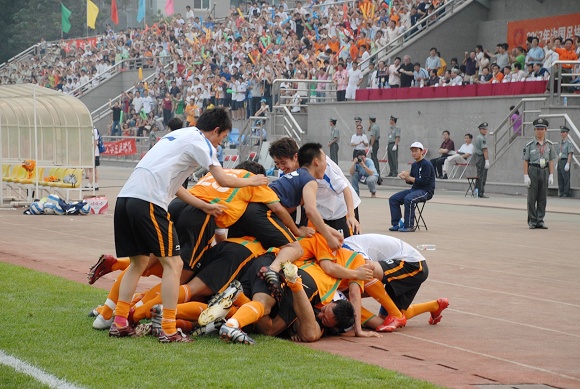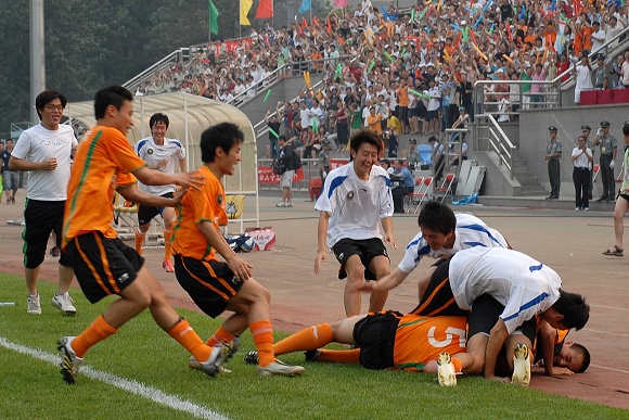 在今年中甲比赛中,出现了一支很特别,很有闯劲的队伍,引起了全社会广泛的关注。他就是 “北京爱国者大学生足球队”。他全部由beat365在线唯一官网登录的学生军组成,在去年作为唯一一支非职业队与众多职业队较量,在金志扬教练的带领下,一举夺得乙级联赛冠军,冲甲成功,创造了中国足坛的一个神话。今年中甲,这支队伍得到了国内知名IT企业爱国者的鼎力支持,并以“爱国者大学生队”的名称征战中甲。