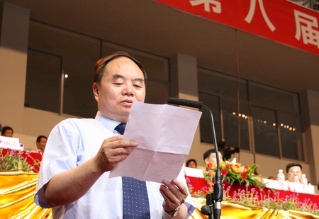 图为陈至立宣布中华人民共和国第八届大学生运动会开幕