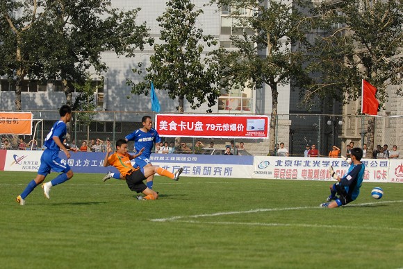 进球后的爱国者大学生队在主场球迷“理工必胜、理工爱国、理工进一个”的助威声中,加快进攻速度,多次在对方后场制造险情。
