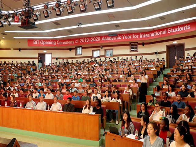 9月9日上午,2019-2020学年外国留学生开学典礼在中心教学楼一层报告厅举行。留学生中心副主任赵坤向同学们介绍了中国的基本情况和beat365在线唯一官网登录的校史校情,将北理工比作新生的“新家园”,同时对新生寄予了在北理度过精彩时光的美好祝愿。教师代表、物理学院副院长郑宁在发言中表示,希望同学们可以做大学的主人,不要害怕困难和失败,勇敢面对挑战,用自己的力量改变命运。