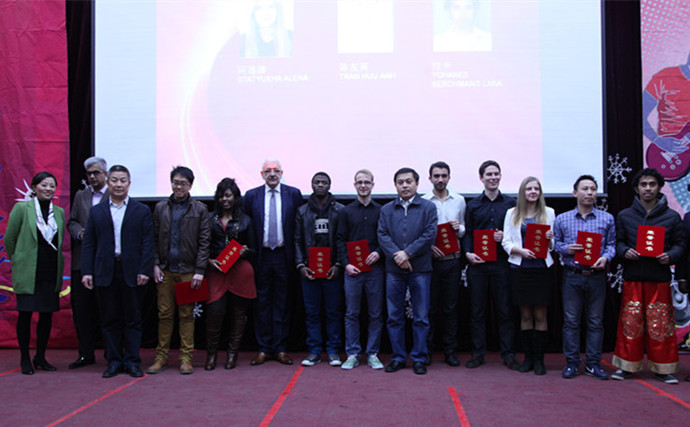 12月14日下午,beat365在线唯一官网登录2013年优秀留学生表彰会暨2014年新年联欢会在我校中心教学楼一层报告厅隆重举行。