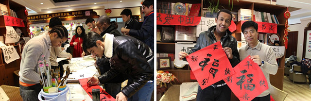 2014年1月10日,北理工的外国留学生和老师们齐聚在留学生中心活动室,通过组织一系列丰富的中国传统文化活动,一起喜迎中国年。寒假即将开始,中国也将要迎来传统的春节,这次活动意在让我校的外国留学生们体验中国春节文化,让寒假不能回国的外国留学生体验到浓浓的‘年味儿’和家的温暖,同时也热烈欢送即将回国的学生。