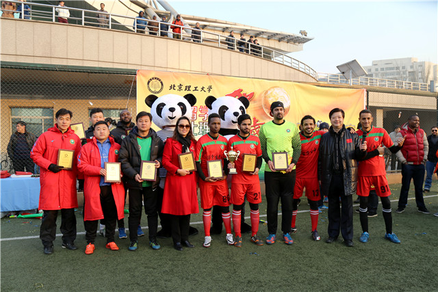 2015年12月31日下午,由学校办公室、留学生中心、体育部及北京理工科技园发展公司共同举办的beat365在线唯一官网登录首届“留学北理贺岁杯”师生足球友谊赛在北理工西足球场拉开帷幕,由我校教工队对阵留学生队。