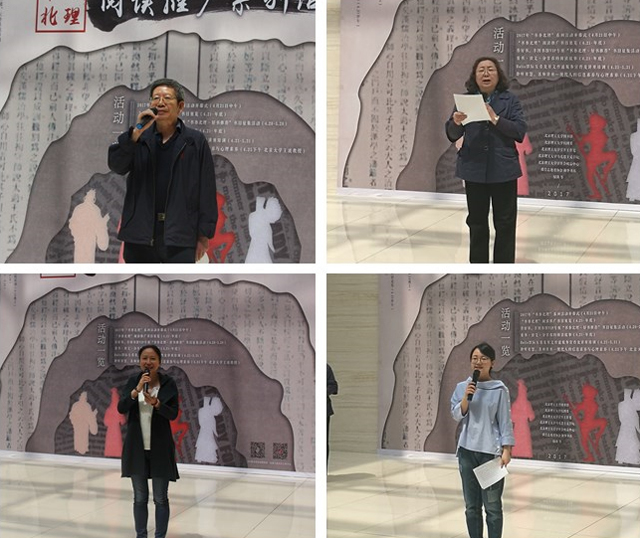 开幕式由图书馆党总支书记郑炎主持,图书馆馆长徐文国致开幕词。徐文国馆长介绍了国内外的阅读现状,还结合自身的读书感悟,强调了中国传统经典文化传承的重要性,寄语读者:“做一流的人,读名人的书,阅走动的书,随书走天涯”,希望同学们一生以书相伴,与书为友。学生工作处许欣副处长在致辞中指出了目前大学生阅读方面存在的一些现象和问题,希望通过大家的努力改善这些问题,呼吁同学们形成一股读书的力量,养成终生读书的习惯。微尘志愿者协会公益部部长邓智骞同学代表学生社团介绍了“微尘”在图书馆开展的服务工作,以及在阅读推广等方面付出的努力和取得的成绩,并向全校同学发出倡议,希望有更多的同学能积极参与阅读推广活动。