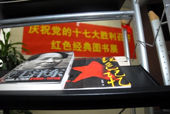 为了庆祝党的十七大胜利召开,图书馆在一层大厅举办了“红色经典图书展”,精选出的图书,多方位、多视角、全景式地展示了全国人民在中国共产党领导下创造的丰功伟绩和取得的卓越功勋,大力弘扬我党艰苦奋斗、不畏艰险、自觉奉献等优良革命传统。