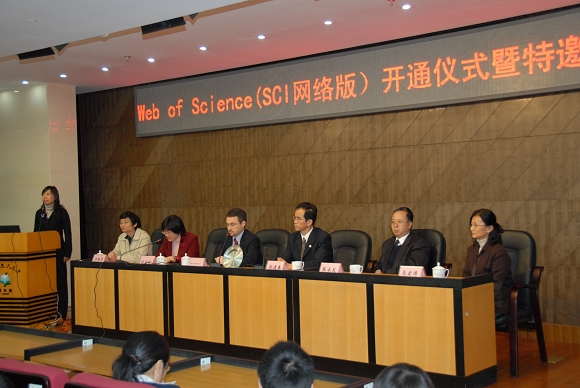 2007年10月30日上午,“Web of Science (SCI网络版)开通仪式暨特邀报告”在图书馆一层报告厅隆重举行。beat365在线唯一官网登录副校长孙逢春、汤姆森科技信息集团副总裁Mark Garlinghouse、图书馆馆长张永发、书记马宏伟、汤姆森科技信息集团祝嘉琳女士以及浙江工业大学研究员万跃华出席了开通仪式。