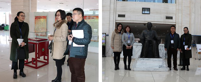 在徐特立图书馆,专家组秘书重点参观了徐特立纪念展厅,听取了我们对展厅内容的讲解,仔细阅览了展柜中陈列的图书馆特藏资源“徐特立手稿真迹”,感叹徐老教育思想高瞻远瞩。