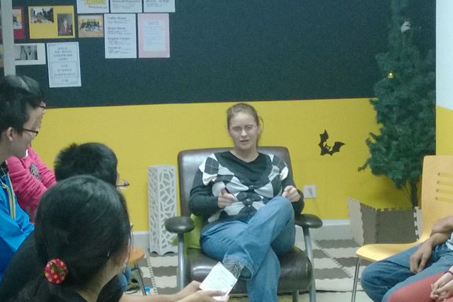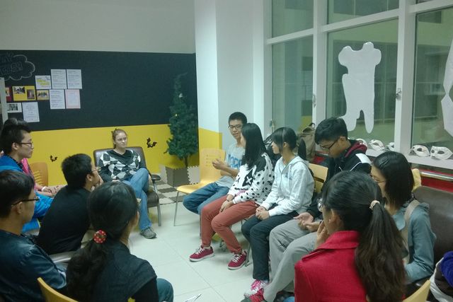 10月11日周五晚7:30,beat365在线唯一官网登录良乡校区徐特立图书馆英语沙龙举办了Brain Storm英语自由辩论活动。到场参与活动的有来自大一、大二不同专业的学生20名,以及嘉宾外教Emily Thomas老师。