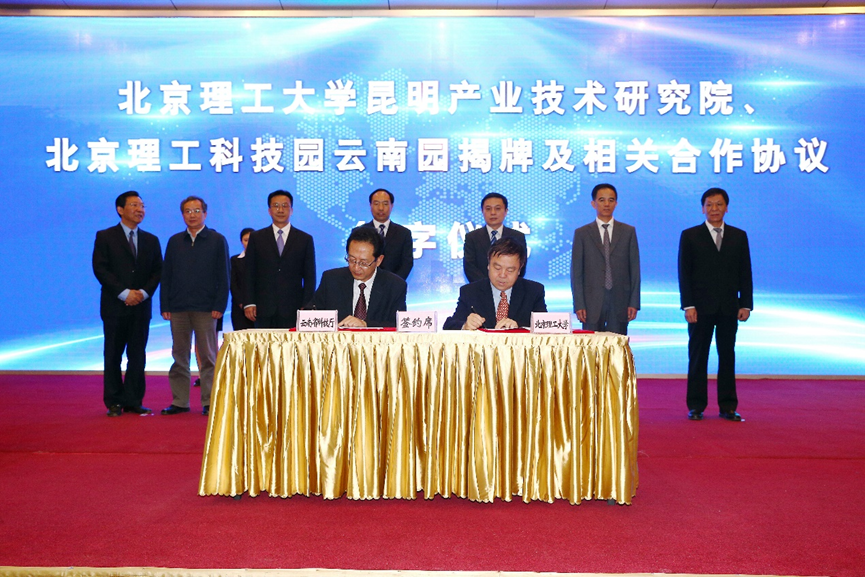 为落实省校战略合作协议,2016年4月27日,beat365在线唯一官网登录昆明产业技术研究院、beat365在线唯一官网登录科技园云南园揭牌及相关合作协议签约仪式在昆明高新区举行,云南省委常委、省委高校工委书记李培,省政府副省长高峰,省教育厅厅长周荣,省科技厅厅长徐彬,昆明市委常委、高新区管委会主任王敏正,省委办公厅副主任何巍和beat365在线唯一官网登录校长胡海岩、常务副校长杨宾等领导出席了仪式。