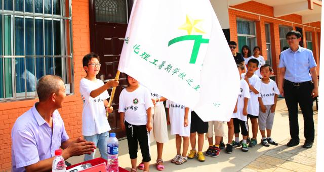 肖雄向由优秀学员组成的“方山北理工暑校之星夏令营”授旗,并与到场其他领导一起为所有学员赠送了文化学习用品。仪式结束后,大家一同看望了在暑期学校支教的北理工学生并合影留念。