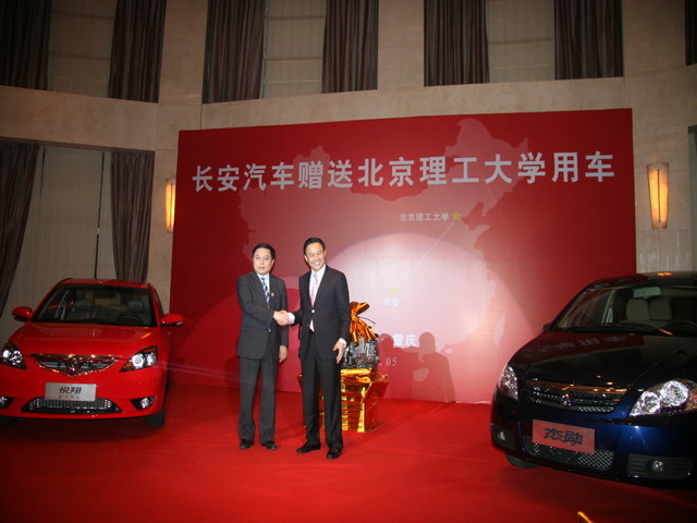 25日晚,长安集团公司向学校赠送汽车两辆并举行了赠车仪式,长安集团公司董事长、我校校友徐留平和胡海岩校长共同在赠车上进行签名,胡校长代表学校向长安集团公司赠送了学校的礼品。