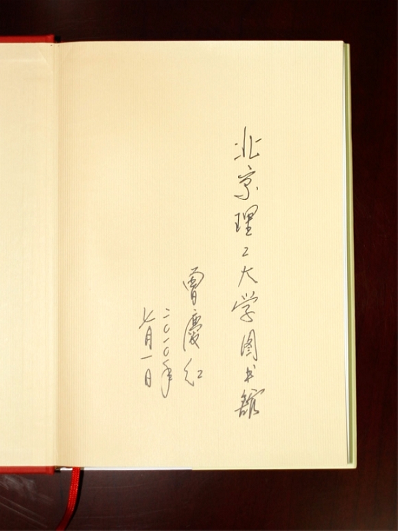 我校70周年校庆前夕,原国家副主席、我校校友曾庆红同志向我校图书馆捐赠了最新出版的《关于党的建设工作》一书并亲笔题词。