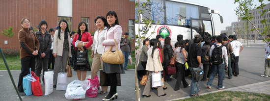 经过紧张有序的考试,良乡校区考试结束后,教师拿着试卷乘坐班车返回中关村校区。