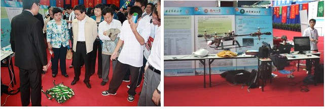 辽宁省副省长陈超英等领导莅临我校展位指导 新型三轴式双旋翼直升机精彩展示