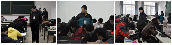 2011年1月17日是我校本科生期末考试周的第一天,两个校区共有4000多名学生参加考试,监考、巡考教师200余人。一早,校党委副书记、副校长李和章来到良乡校区巡视期末考试,陪同李校长巡视的有教务处、学工处、基础教育学院、团委等部门的负责人。李校长进入到部分考场检查了考生座位安排,监考老师到位,学生证件核实等情况。每个考场监考老师认真负责,考生遵守考场纪律,秩序井然。