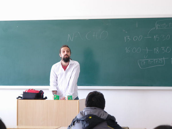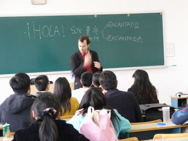我校同学学习西班牙语热情很高,有820名同学进行了网络报名,最后有100名同学通过笔试选拔,成为首届西班牙语班的成员。3月13日周五下午1:00,在同学们热烈的掌声中,三名外教开始了我校首次西班牙语课堂教学。
