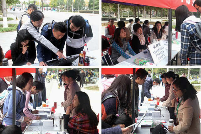 教务处围绕师生关心的热点问题开展现场咨询,并首次将业务办理现场搬到室外,为师生演示新版本科教务管理系统。本科教务系统更新项目自2014年启动至今,历时近3年,教务处各科室教师参与其中,多次奔赴兄弟高校开展调查研究,深入了解我校师生的需求与期望,与开发人员共同商讨技术细节。目前,新版本科教务管理系统核心功能已进入试运行阶段,后续将按业务开展的时间顺序在系统中逐步开放相应功能。