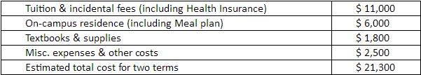 在加拿大滑铁卢大学学习期间的费用由学生自理。每学期的费用估计(加元)如下: