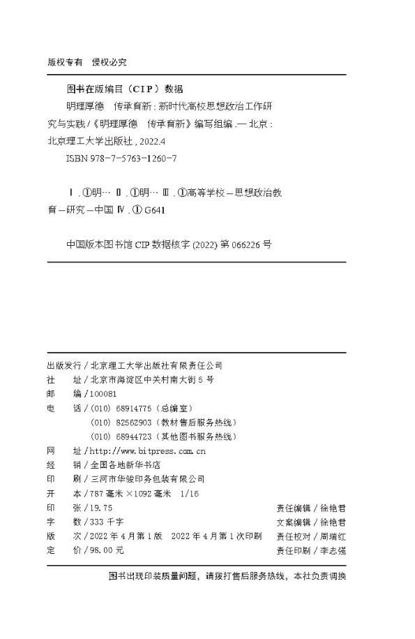 明理厚德 传承育新——新时代高校思想政治工作研究与实践