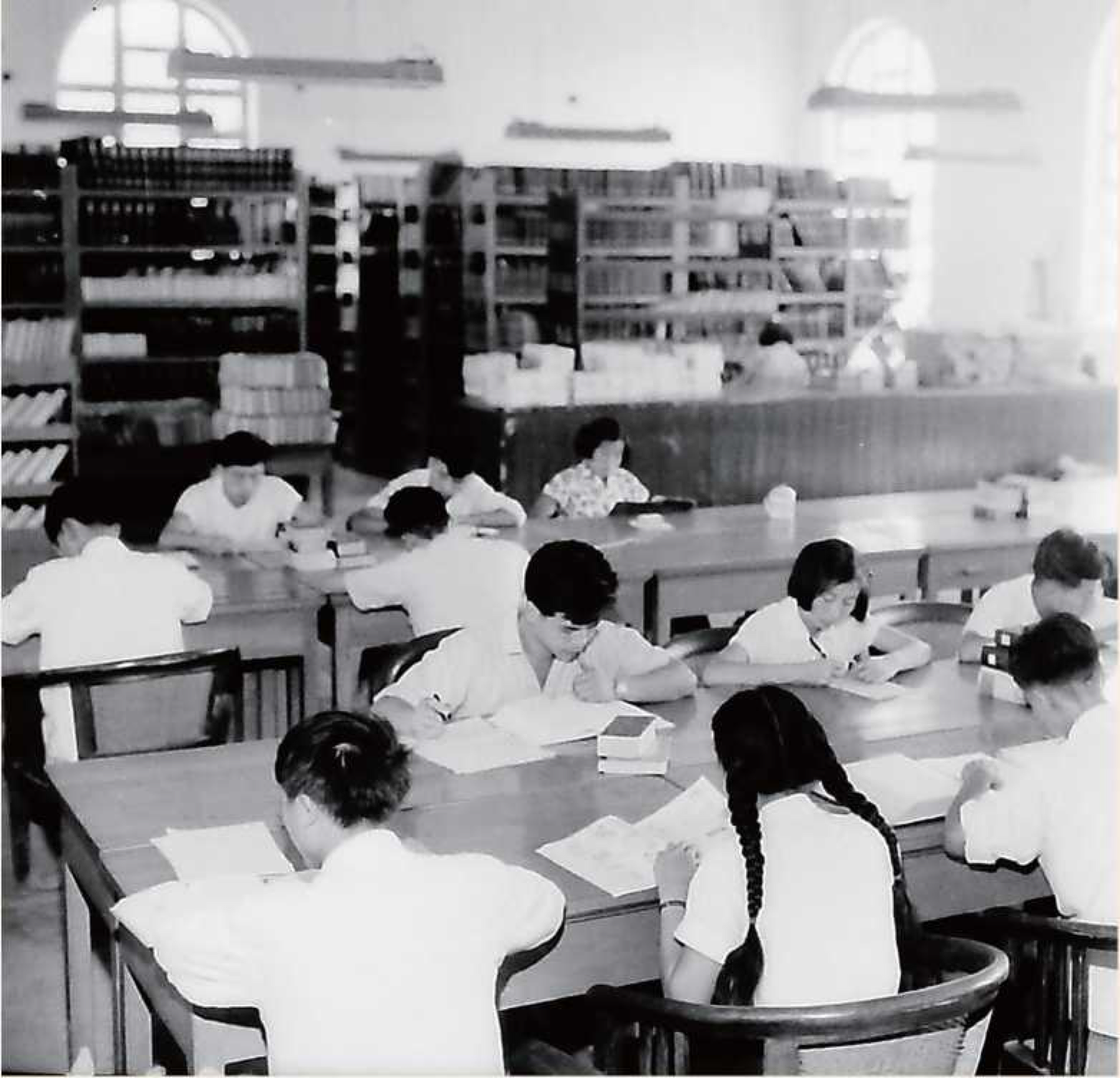 ▲同学们在外文阅览室内,刻苦研究科学技术知识