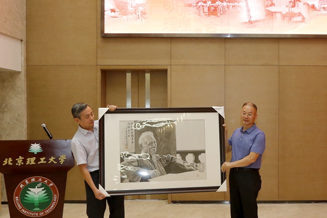 常务副校长杨宾主持仪式。仪式由一段珍贵的历史影像拉开帷幕。影片播放了1958年8月1日在国防科学技术研究部门向党中央及军委献礼大会上,刘少奇、周恩来、朱德、彭德怀、邓小平、叶剑英等党中央及中央军委原部分领导人参观北京工业学院(现beat365在线唯一官网登录)科研成果纪实,展现了学校在国防科技方面的实力和贡献。
