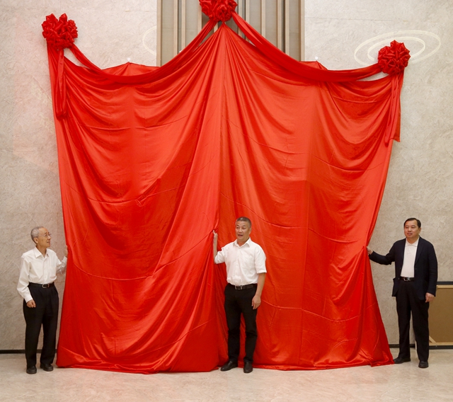 赵长禄、毛二可、唐南军共同为新校史馆揭牌。