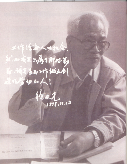 时间就是生命!时间就是速度!时间就是力量!徐更光以这样紧迫的责任感自励,在充满希望的年代里,他希望用自己的智慧与知识为国家建设添砖加瓦。他戏言,“像我这般大器晚成的人如果还不努力做点事情,就真要白来这世上一遭了。”