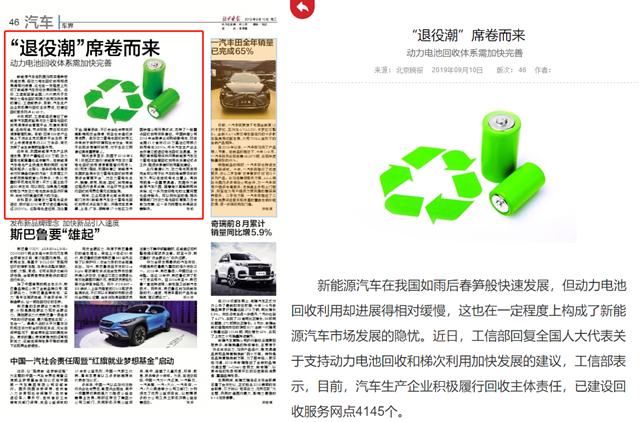 新能源汽车在我国如雨后春笋般快速发展,但动力电池回收利用却进展得相对缓慢,这也在一定程度上构成了新能源汽车市场发展的隐忧。近日,工信部回复全国人大代表关于支持动力电池回收和梯次利用加快发展的建议,工信部表示,目前,汽车生产企业积极履行回收主体责任,已建设回收服务网点4145个。