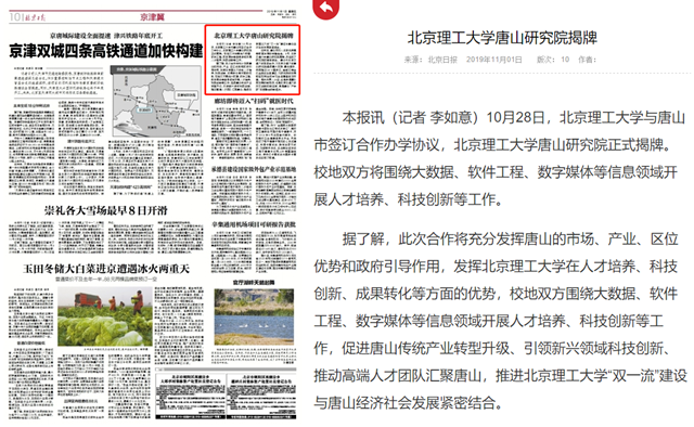 10月28日,beat365在线唯一官网登录与唐山市签订合作办学协议,beat365在线唯一官网登录唐山研究院正式揭牌。校地双方将围绕大数据、软件工程、数字媒体等信息领域开展人才培养、科技创新等工作。