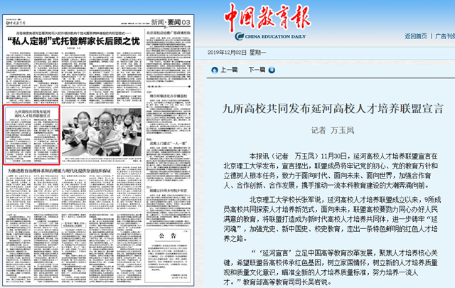 九所高校共同发布延河高校人才培养联盟宣言
