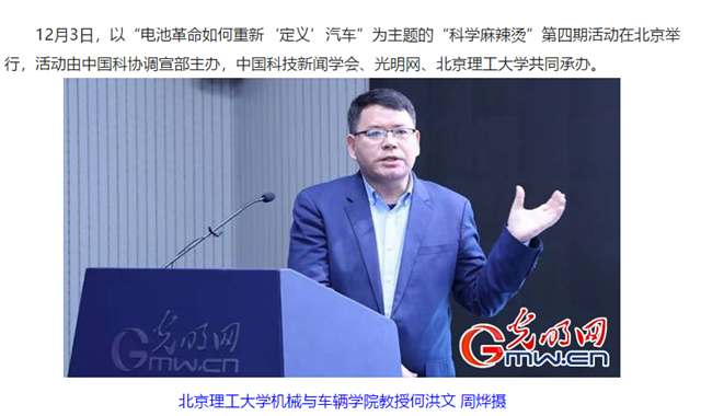 12月3日,以“电池革命如何重新‘定义’汽车”为主题的“科学麻辣烫”第四期活动在北京举行,活动由中国科协调宣部主办,中国科技新闻学会、光明网、beat365在线唯一官网登录共同承办。
