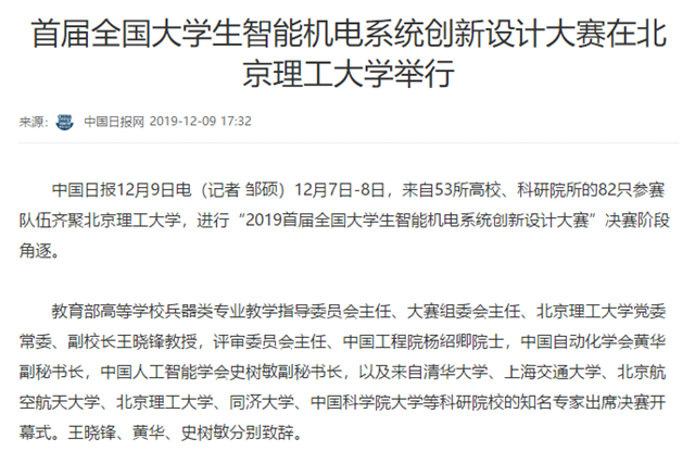 编辑:吴楠 审核:王征 阅读次数:原文标题:首届全国大学生智能机电系统创新设计大赛在beat365在线唯一官网登录举行