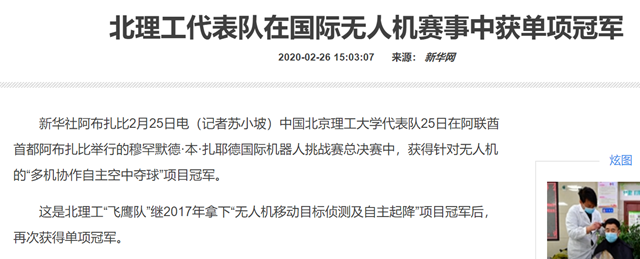 编辑:吴楠 审核:王征 阅读次数:原文标题:北理工代表队在国际无人机赛事中获单项冠军